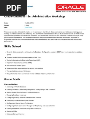Oracle Database 19c Administration Workshop Pdf Oracle Corporation Databases